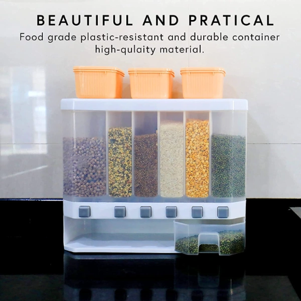 - The wall-mounted grain dispenser makes the kitchen clean and tidy, you can put enough food in the kitchen in orderly.
